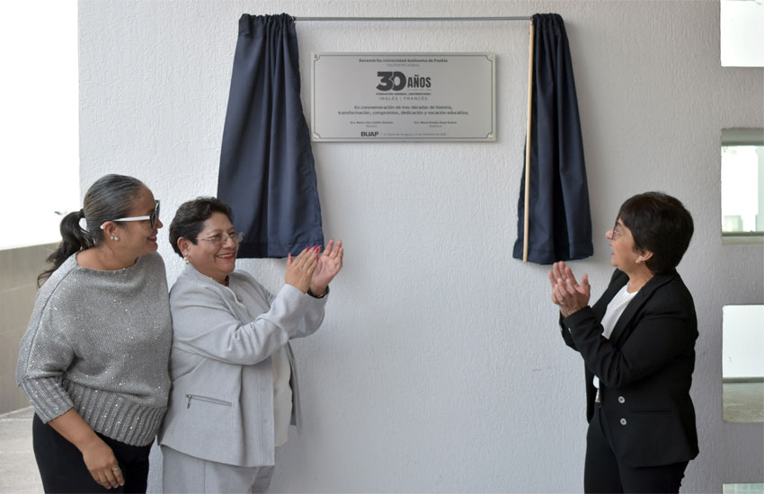 Devela Lilia Cedillo placa conmemorativa del 30 aniversario de la Formación General Universitaria Inglés-Francés