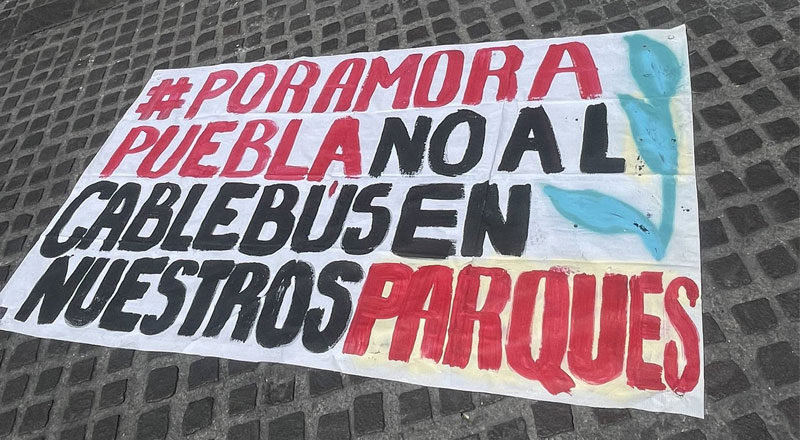 Protestan contra el Cablebús en Puebla; “No es progreso, es ecocidio”
